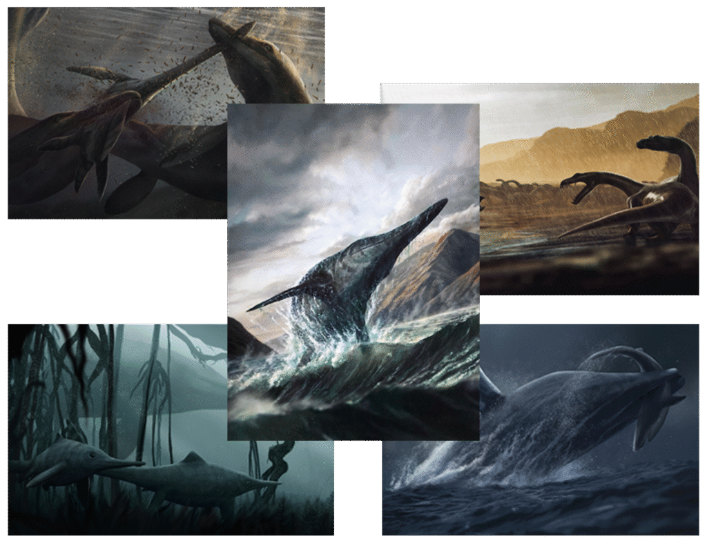 Przepiękne sceny przedstawiające prehistoryczne zwierzęta. Cztery z nich zdobią książkę. Plakaty możecie kupić pojedynczo lub np. taniej w zestawie z książką >>